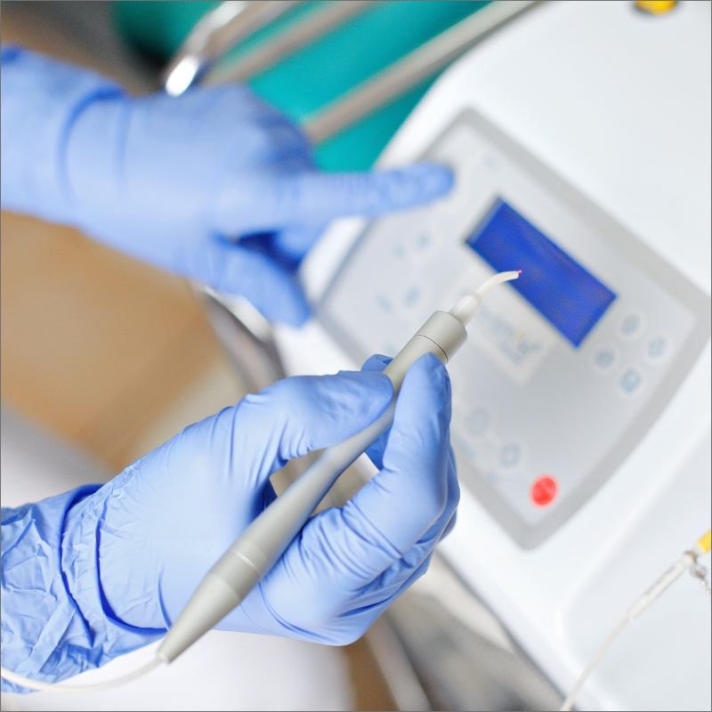 Our use of the Diode Laser allows us to perform a variety of soft tissue treatments with unparalleled precision and patient comfort. This advanced tool uses a highly concentrated beam of light energy to gently treat areas like the gums, often eliminating the need for a scalpel and stitches. Because the laser simultaneously seals blood vessels and nerve endings, you benefit from minimal bleeding, less swelling, and a significantly faster healing period. This means we can efficiently complete precise procedures, such as cosmetic gum recontouring or treating painful canker sores, all while providing a more relaxing experience for you.